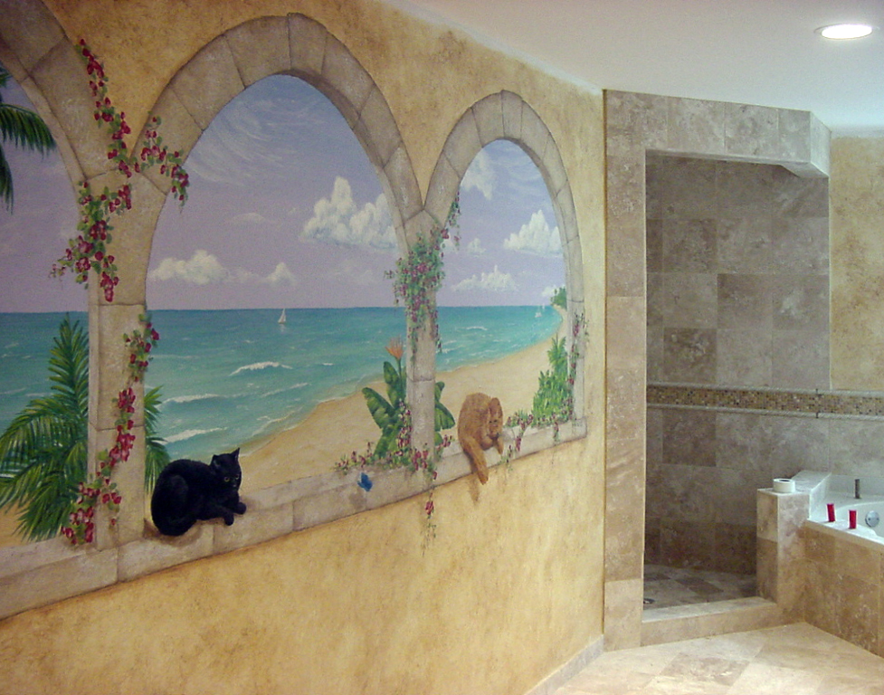 Transforming a bathroom with a faux finish or mural is a fantastic way to inject style into a space often overlooked in your home or business. Be it a tranquil landscape or a contemporary design, a mural or faux finish will enhance the vibe of your bathroom.
